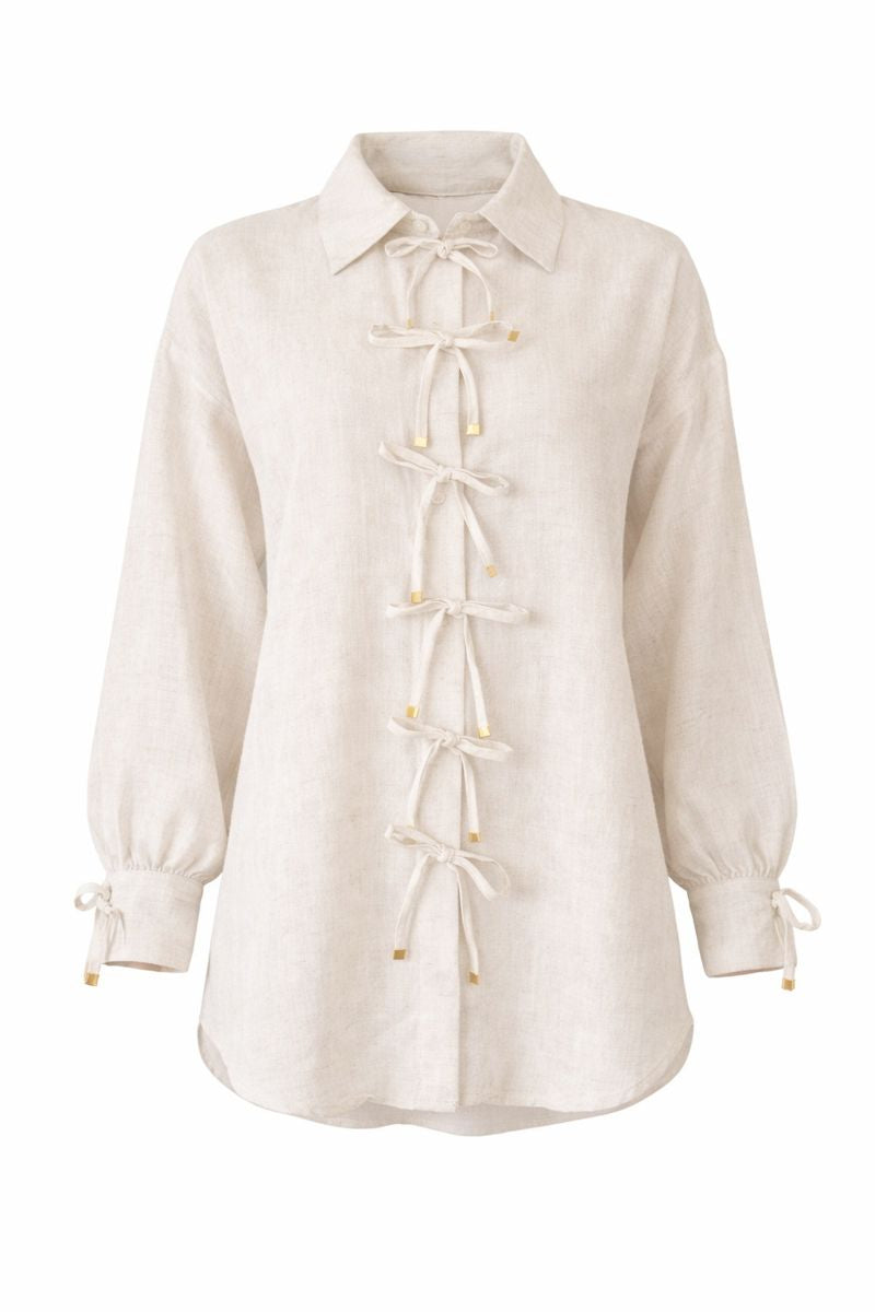 Diese Bluse zeichnet sich durch ihre feminine Tie-Front und die verspielte Ärmelschleife aus. Gefertigt aus angenehmem Material ist sie bequem zu tragen und für jede Jahreszeit geeignet. Ein perfektes Kleidungsstück für einen exklusiven und stilvollen Look.