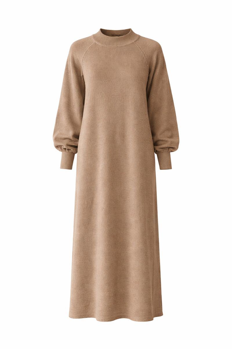 Dieses Strickkleid mit Ballonärmeln ist perfekt für die kalte Jahreszeit. Dank des hochwertigen Strickmaterials hält es warm und ist gleichzeitig bequem. Das knöchellange Kleid verleiht Weiblichkeit und ist eine ideale Ergänzung für deine Garderobe.