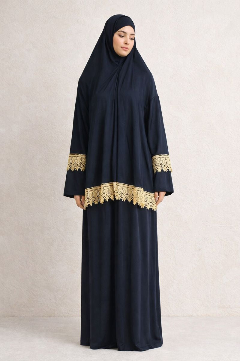 Zweiteilige Gebetskleidung mit Spitze - Marineblau